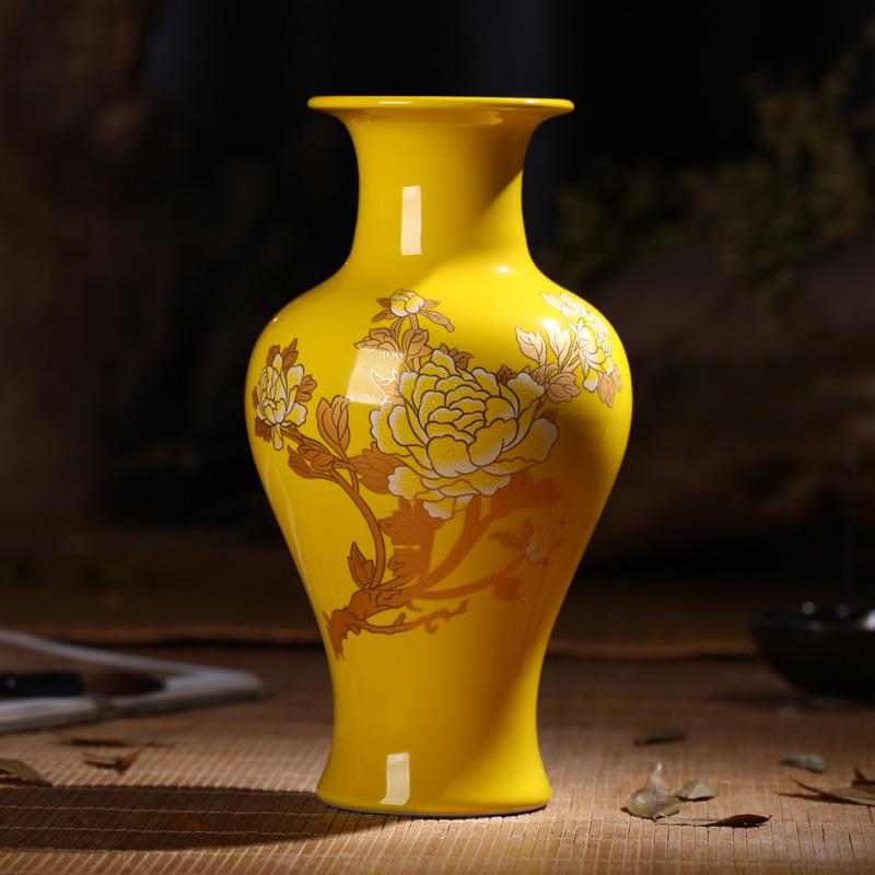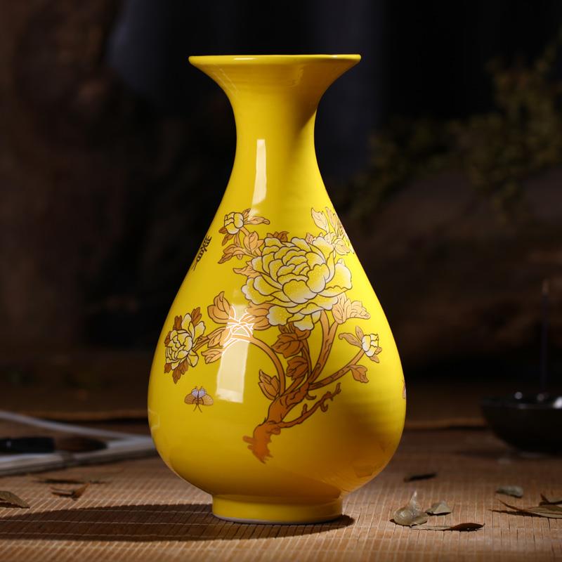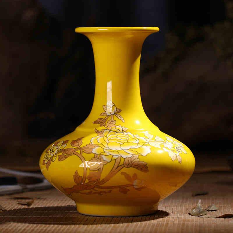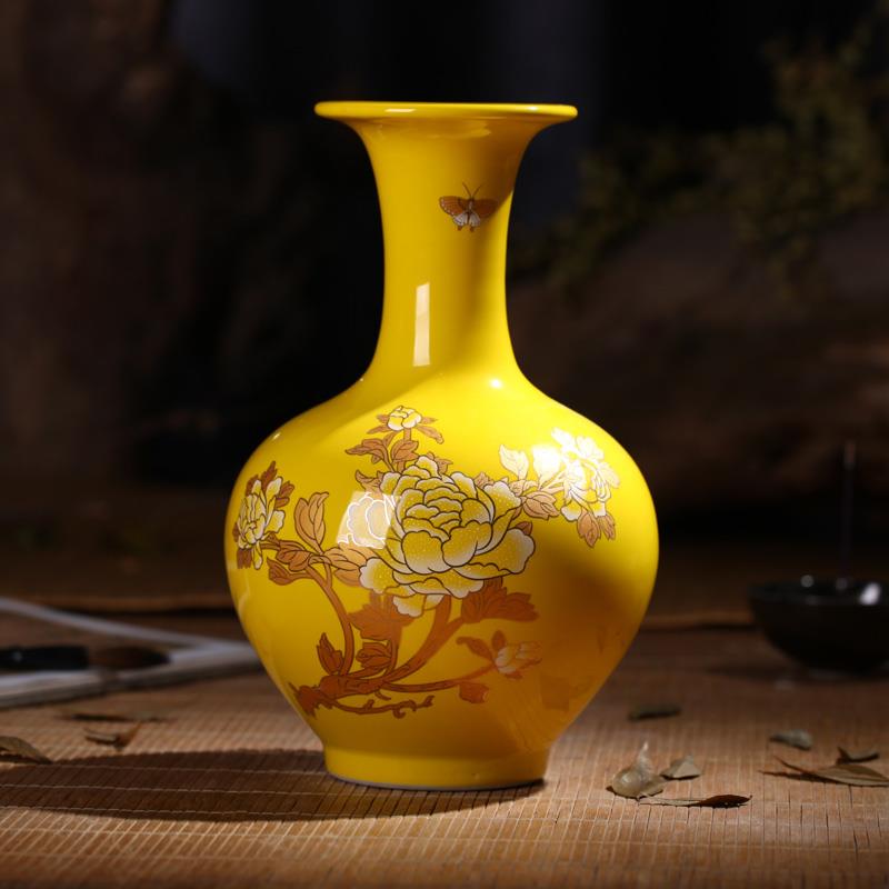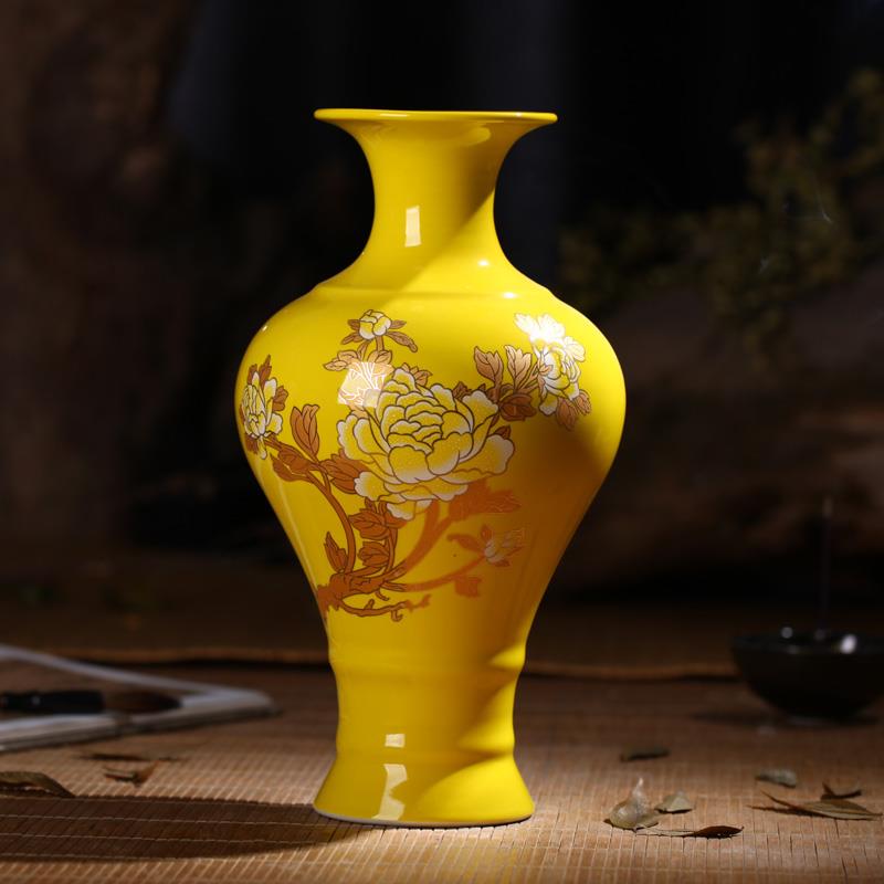 RYLW36 Yellow Color glazed Pastel color Twsited flower wrapped lotus mushroom bottle Decorative Porcelain Flower Vase