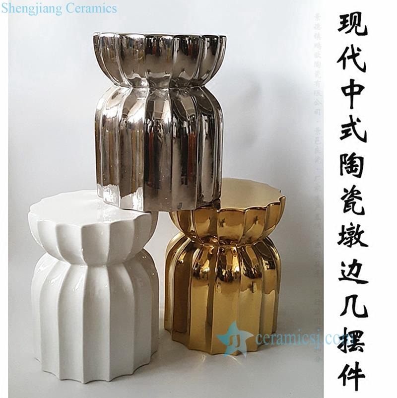 Jingdezhen high quality deluxe ceramic garden stool Silver plated multi-prismatic waisted shape ceramic patio stool