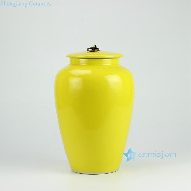 Lemon yellow glazed flat lid with metal ring collectible cookie jar