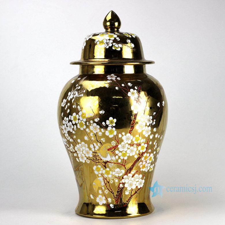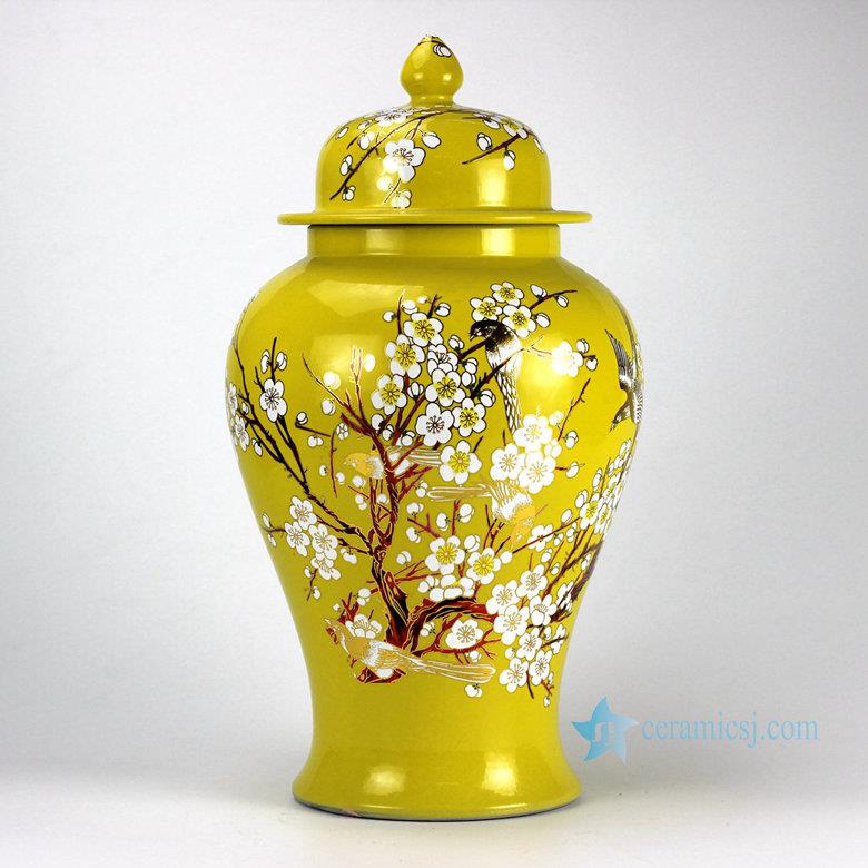 Plum blossom bird pattern Chinese chinoiserie temple jar with cover |