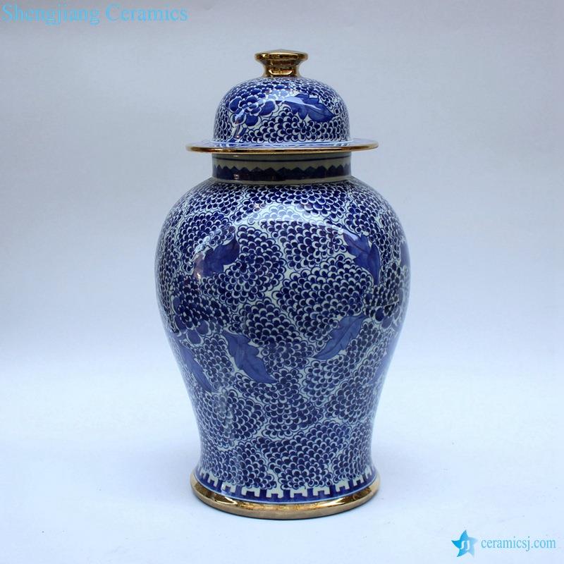 Golden line plated hand paint blue and white floral pattern ceramic ginger jar