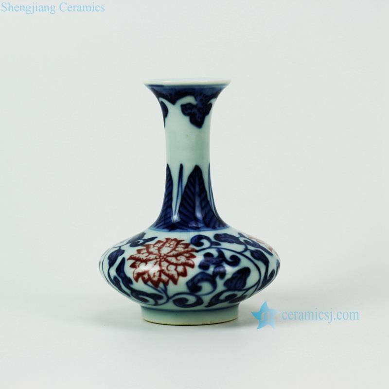 Hand paint blue and white under-glaze red floral pattern antique chinese porcelain small vase