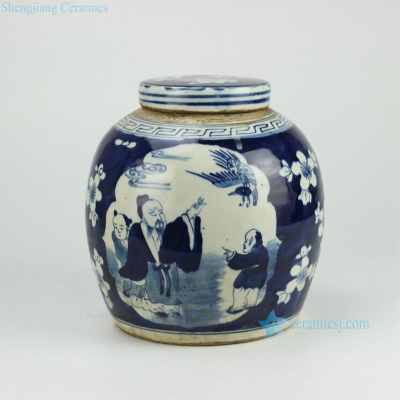 Hand paint chinese ancient folk pattern flat lid round ceramic jar antique finish