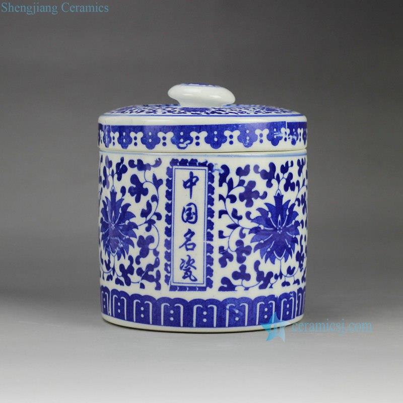 Blue and white factory direct sale interlock lotus branch pattern ceramic tin jar