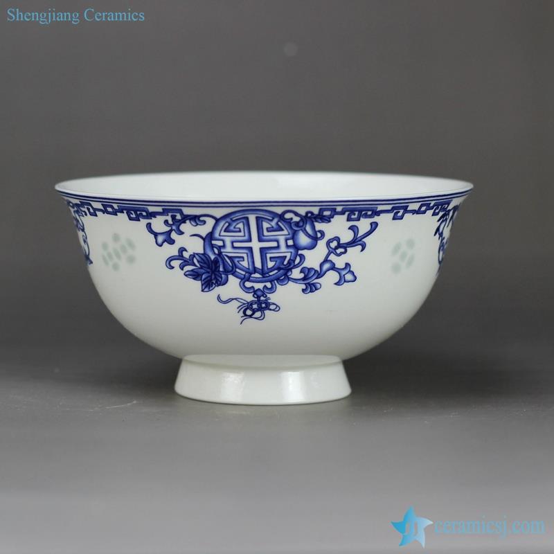 rice grain pattern blue and white happiness and longevity moral mark high heel bone china dinner set |
