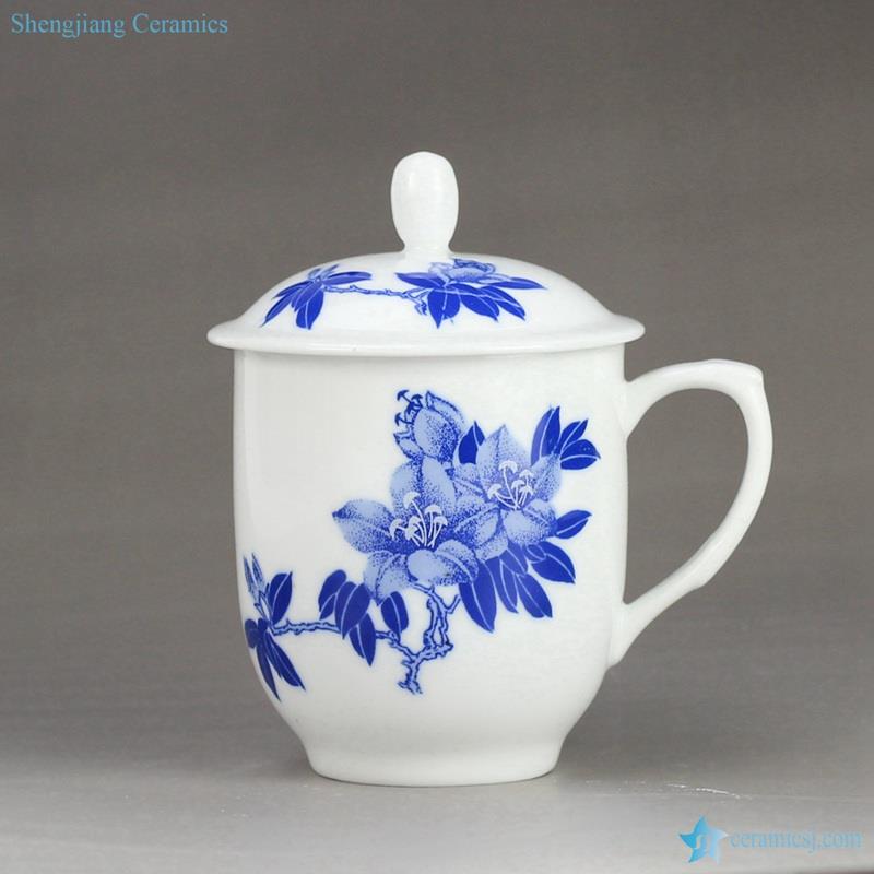 Gardenia design eco-friendly blue and white ceramic cup