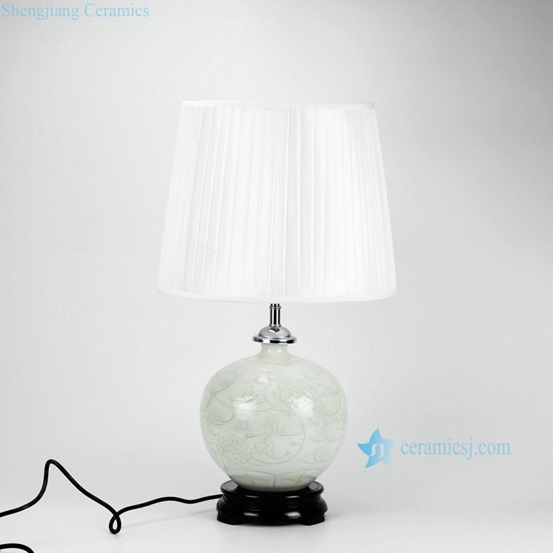Green color tiffany style lamp ceramic material engraved floral pattern