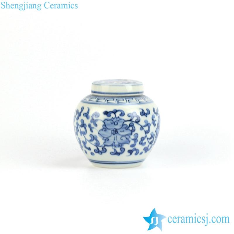 Oriental traditional style flower interlock branch pattern flat lid pottery tiny urn
