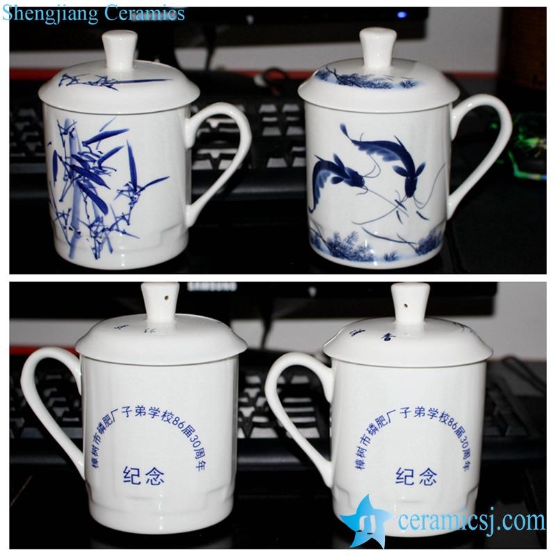 High quality customize logo at back part bone china tea mug with lid for guest, event, forum, meeting