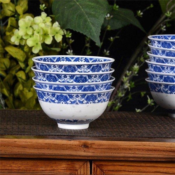 Jingdezhen China unique rice pattern blue and white ceramic bowl |