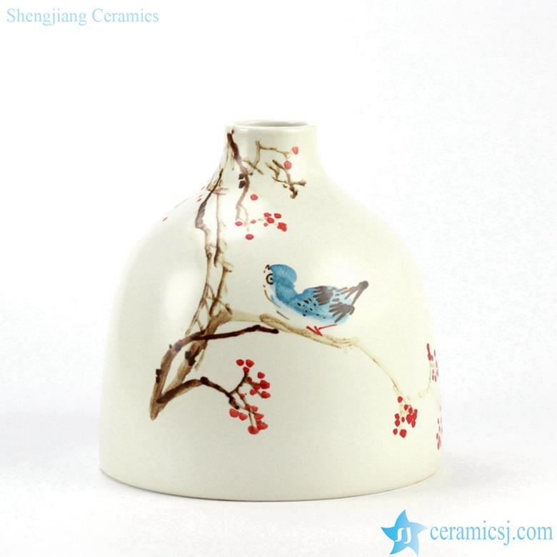 Big volume hand paint bird and branch pattern colorful matte finish vase