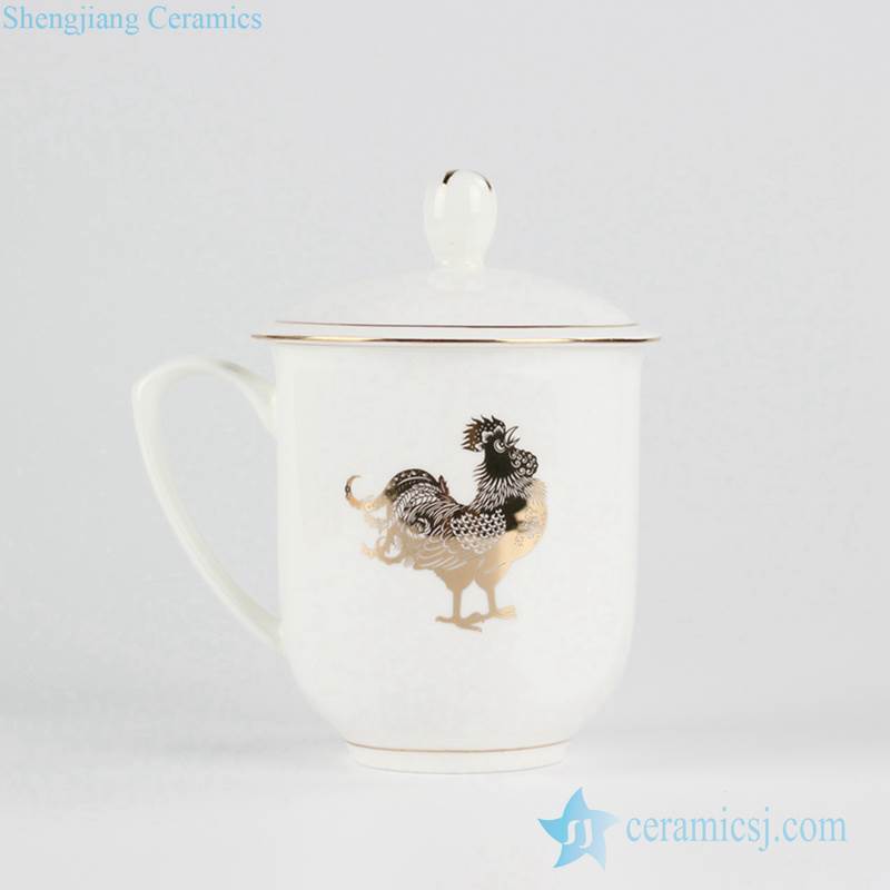 Shinny rooster pattern golden 2017 office business mug cup with lid
