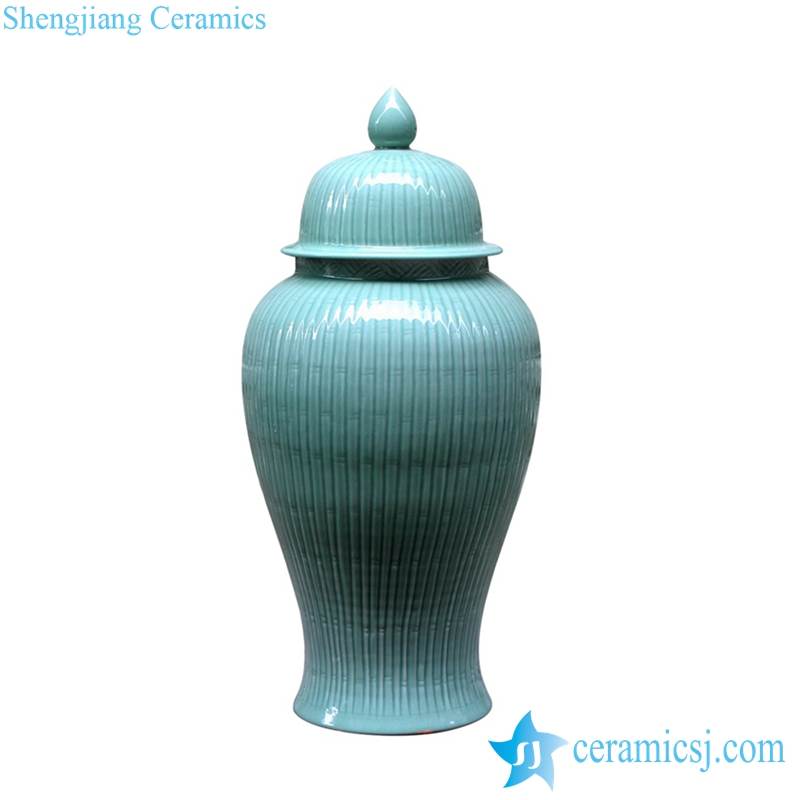 Bamboo design stripe carved celadon ceramic large temple jar |