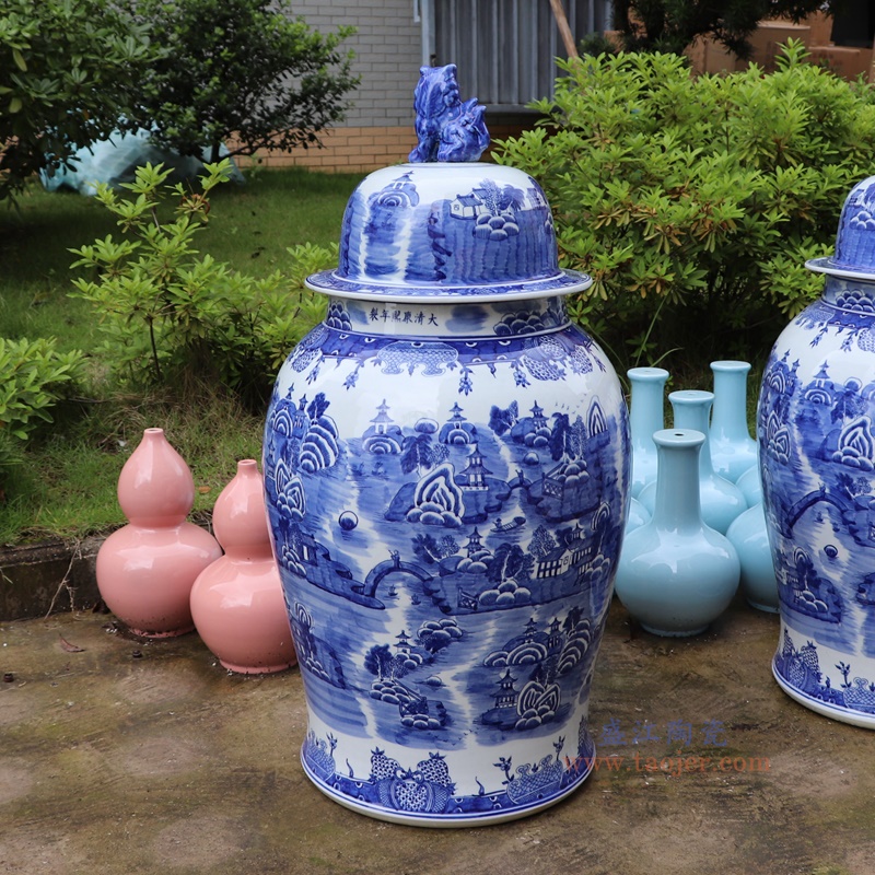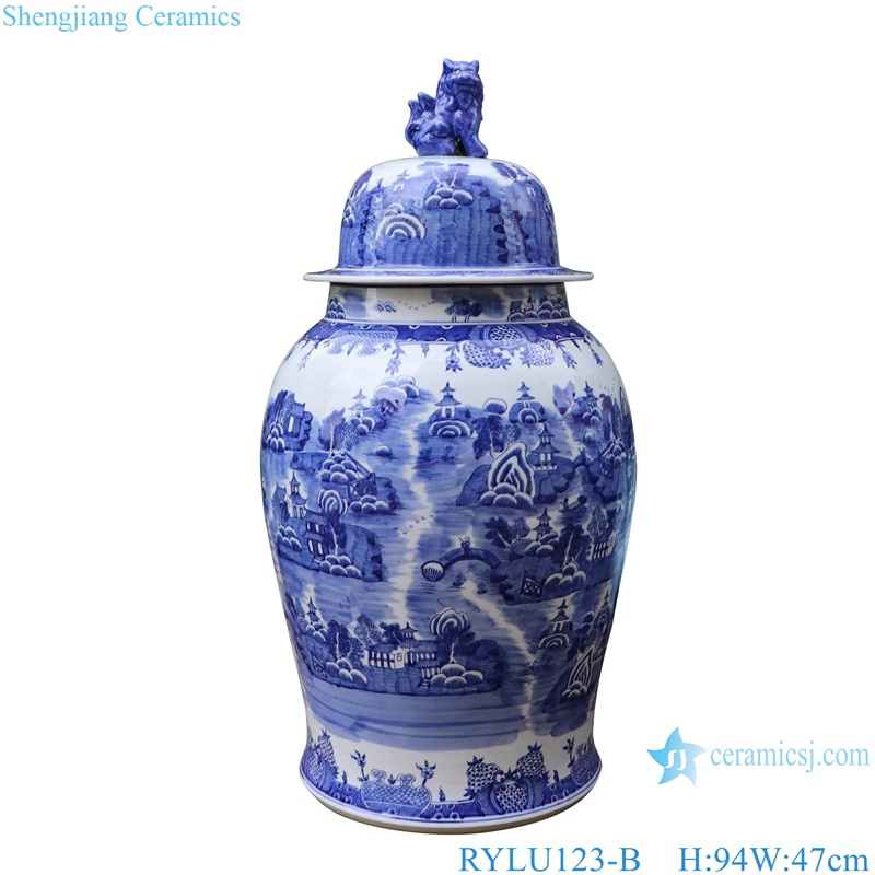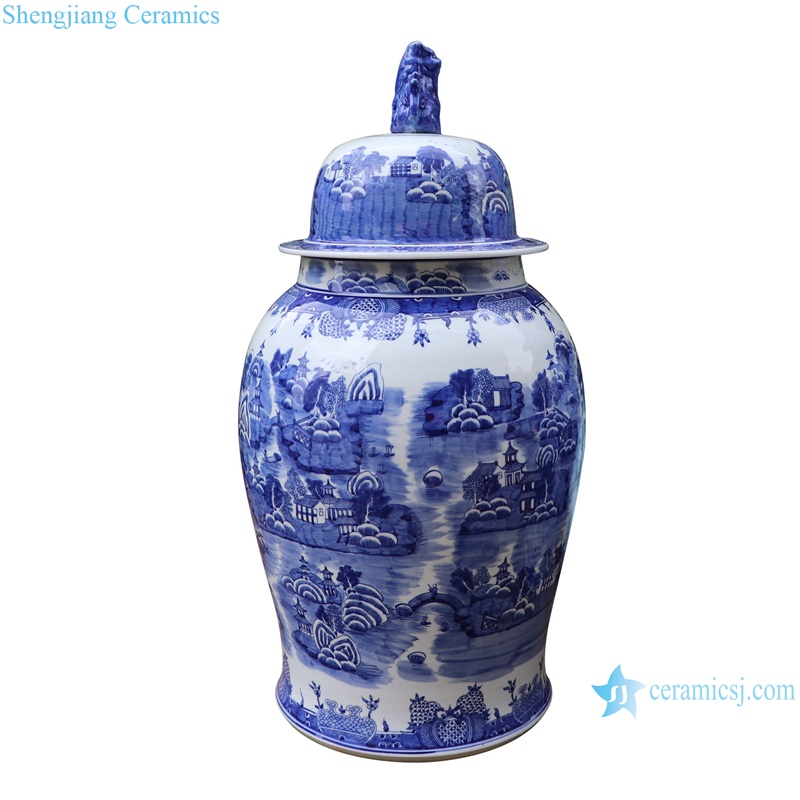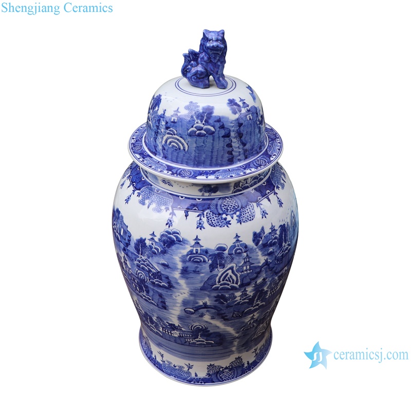 Blue and white lover collection landscape pattern and foo dog lid design delft tall ceramic ginger jar