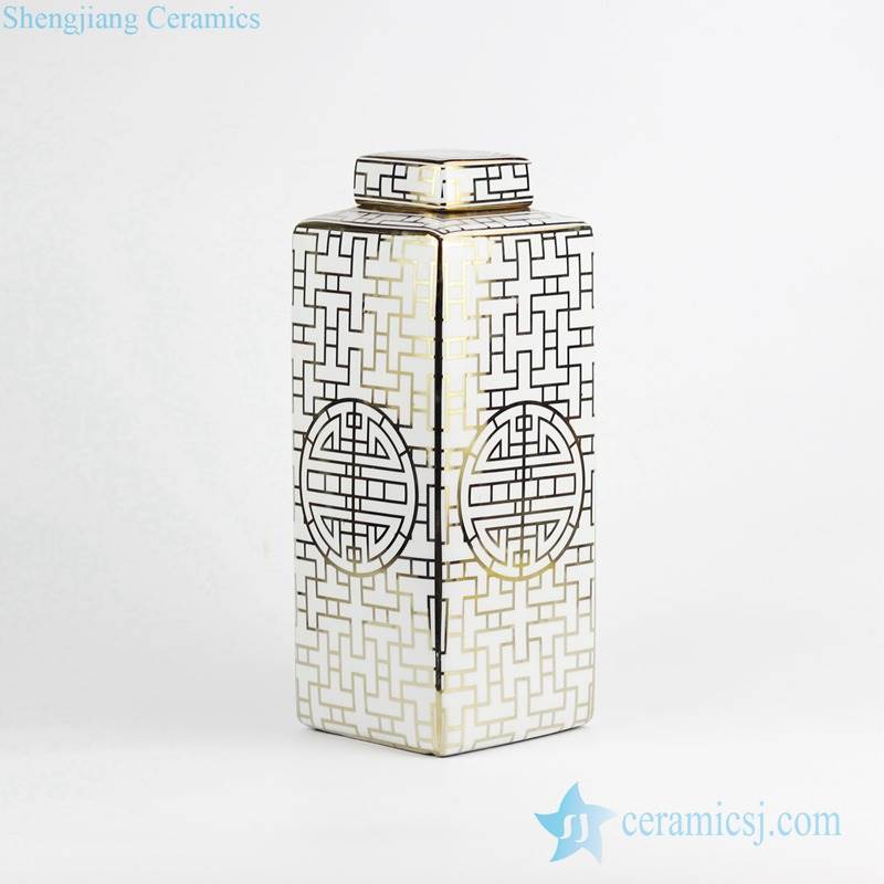 Gold line porcelain square tin jar with flat lid