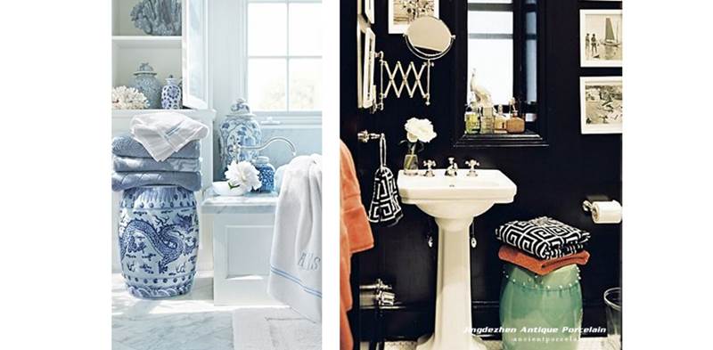 The bathroom is also a common place for ceramic stool. Anti-water, anti-bacterial and art furnishing character makes the ceramic stool more outstanding in bathroom end table. It is convenient to put towels, clothes on it when you need to get a shower.