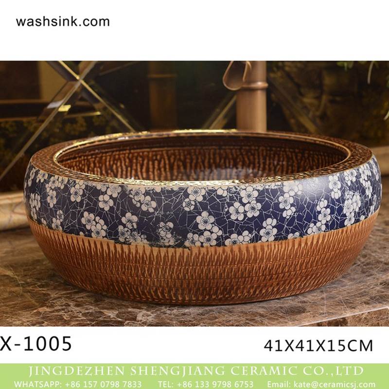China traditional high quality bathroom ceramic atique carving wintersweet pattern wash basin |