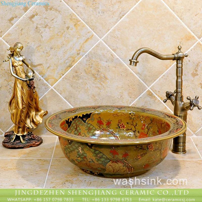 Jingdezhen artistic hand made caramel color floral small corner sink