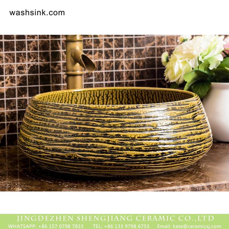 Chinese morden new style irregular bar pattern retro ceramic art wash hand basin |