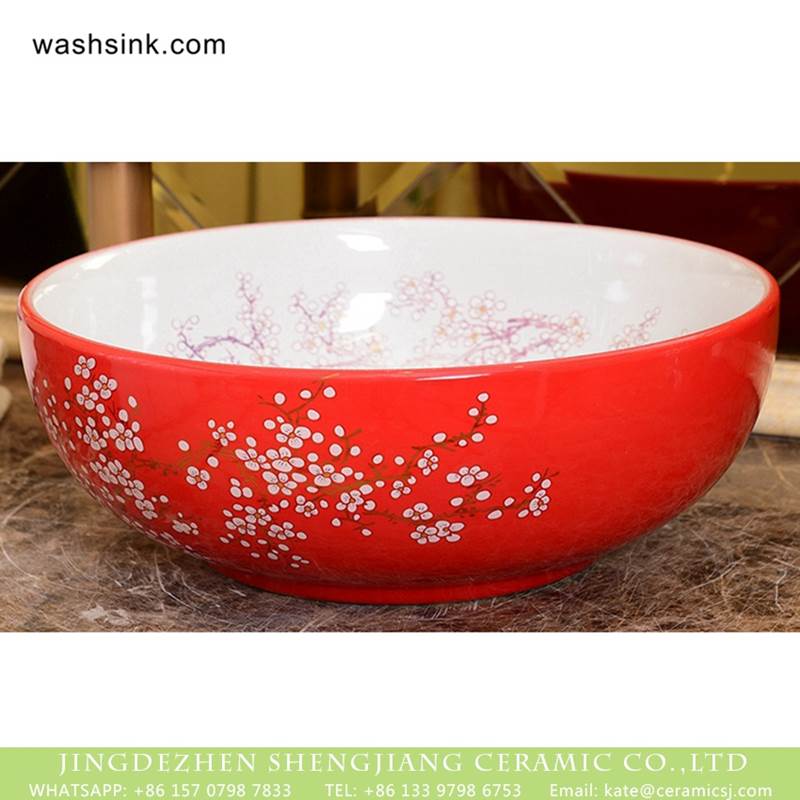 Wholesale artistic oval bathroom ceramic red surface and white wall washbasin