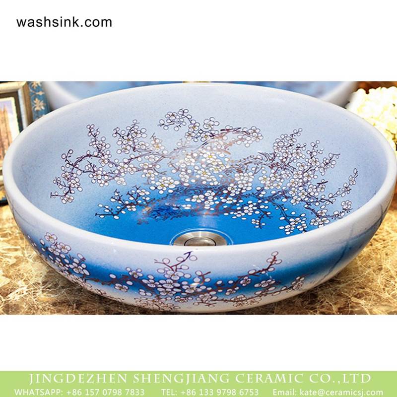 Shengjiang factory porcelain counter mounted single hole the gradient blue color wash basin
