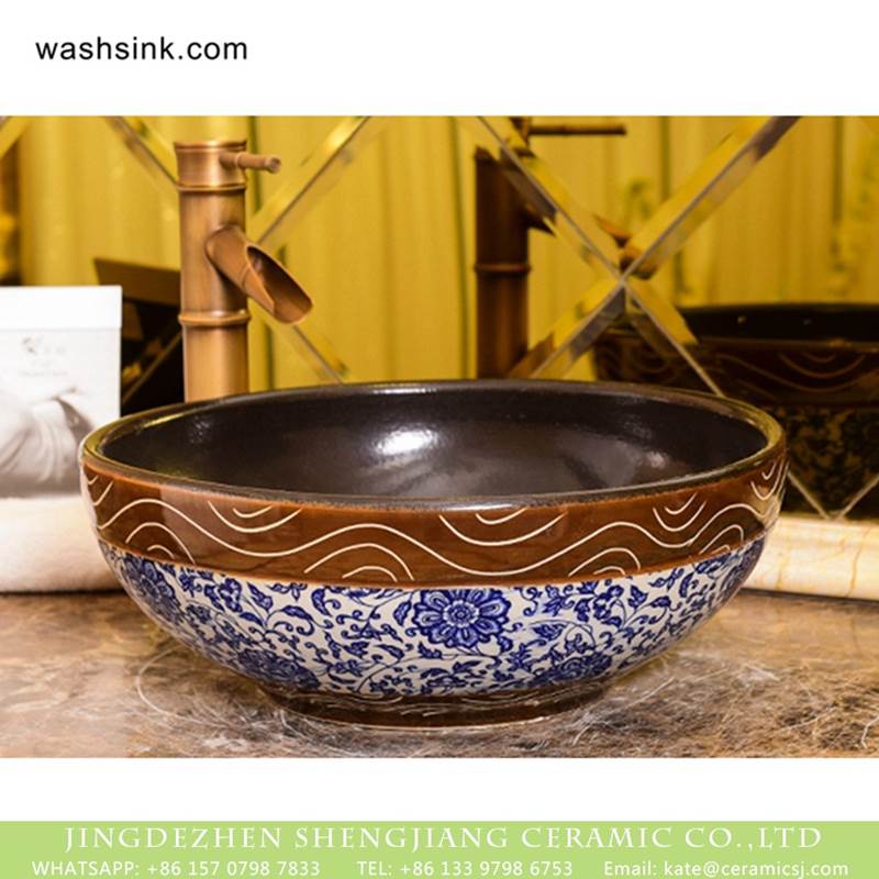 New produced Jingdezhen Jiangxi art ceramic blue and white with brown color pattern smooth sink