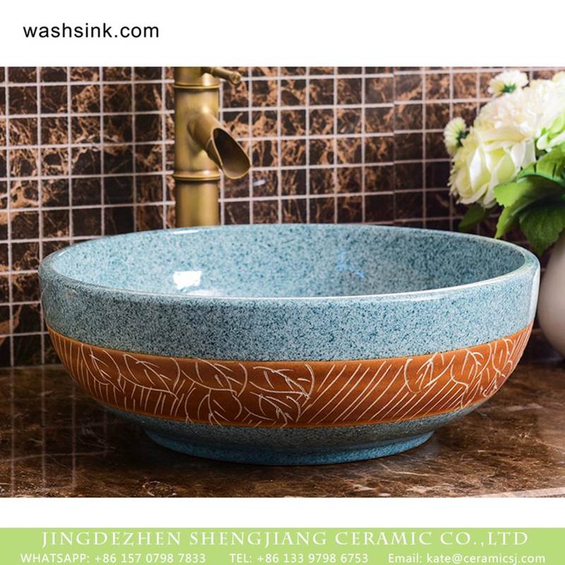 Jingdezhen wholesale smooth ceramic art famille rose turquoise carved round leaf pattern sink bowl |