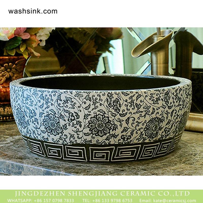 Chinese traditional design black and white color surface with flowers pattern lavabo |