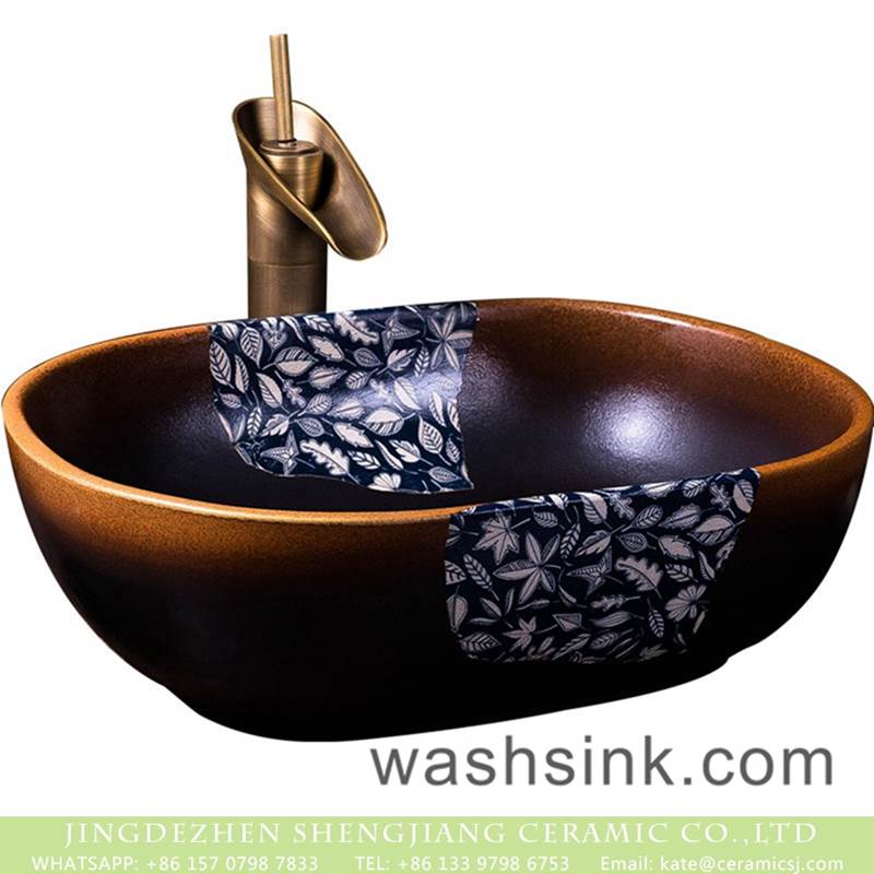 Jingdezhen hot new products the gradient of dark with leave pattern vanity basin |