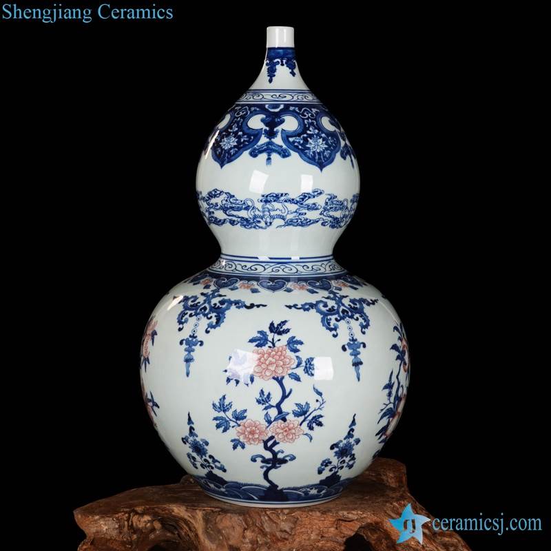 Gourd shape China auspicious pattern factory ceramic vase for export