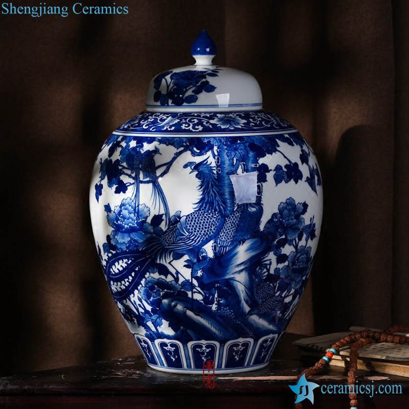 Phoenix pattern hand drawing Jingdezhen style round porcelain jar