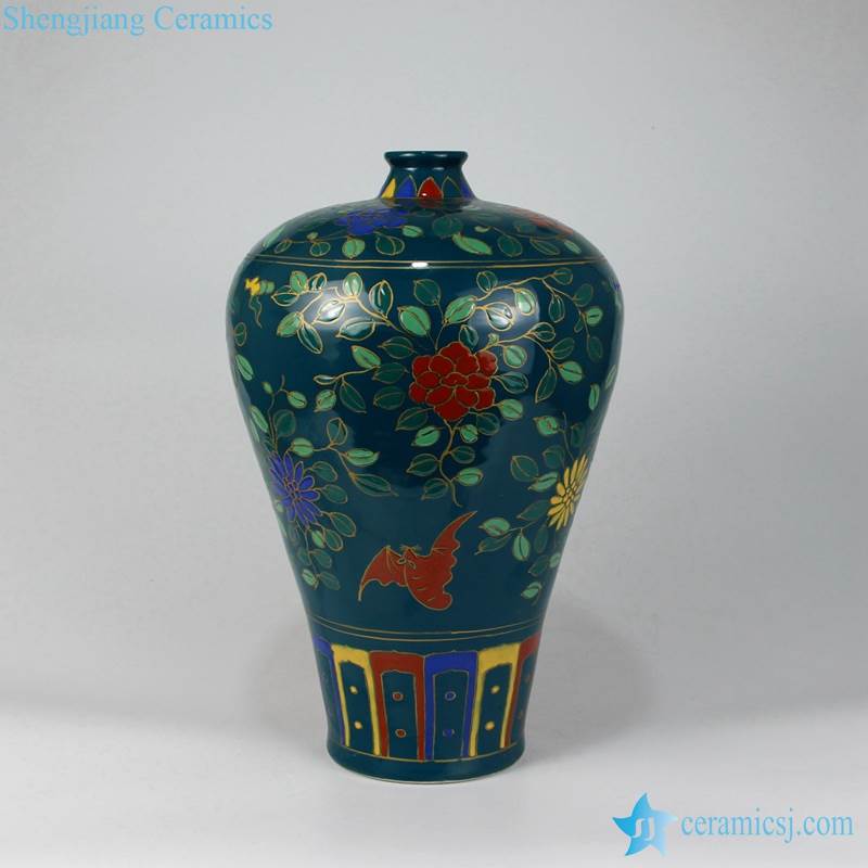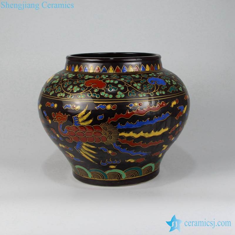 Lacquerware style dark color hand painted reproduction flower vase