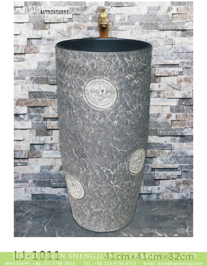 China traditional style ceramic grey color with special printing pedestal basin |
