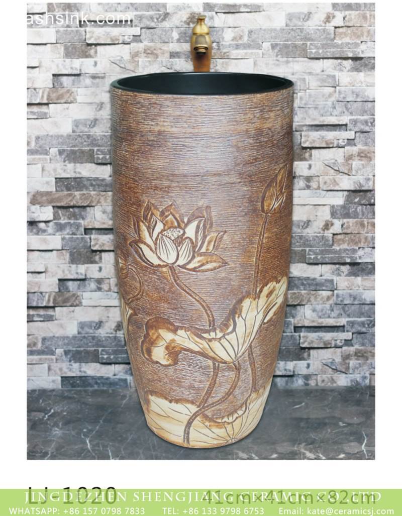 China traditional style ceramic brown color with hand carved flowers pattern one-piece basin |