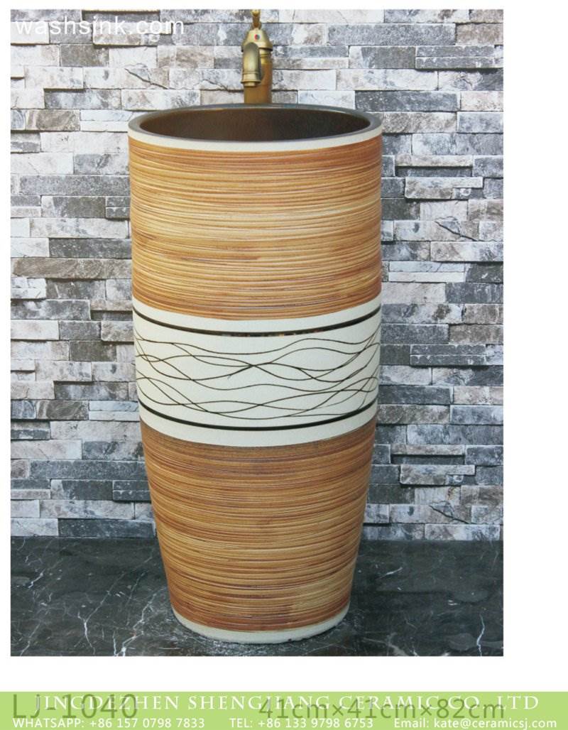 Shengjiang factory hot new products wood surface and white color with black lines one-piece basin |