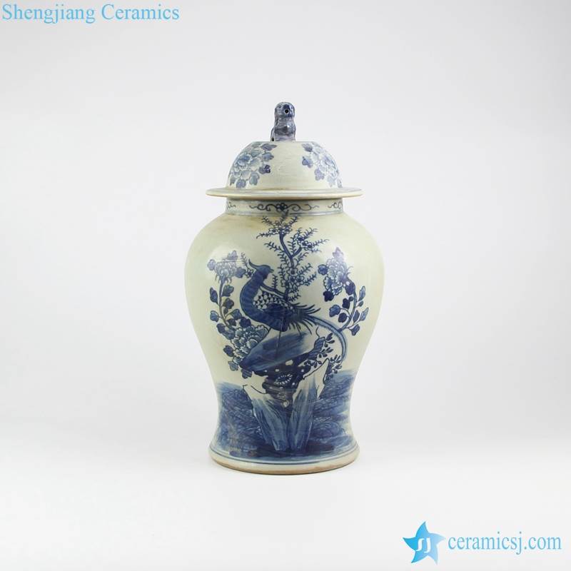 Antique style hand painted phoenix flower pattern ceramic jar with foo dog lid