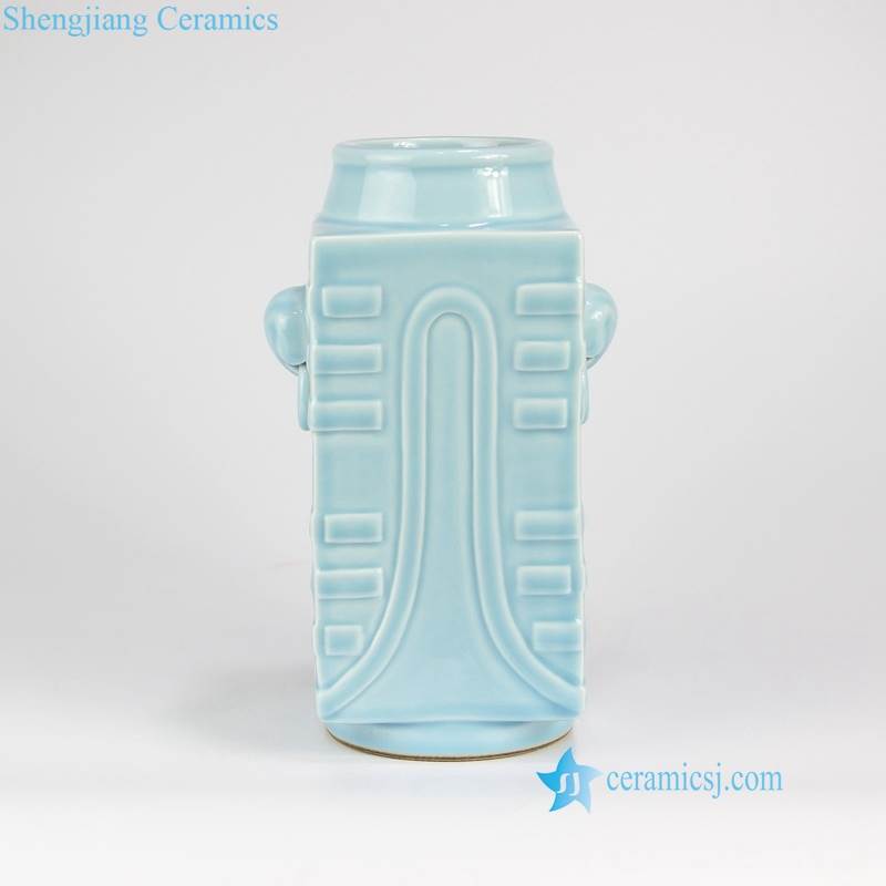 Light blue elephant head with ring style square porcelain flower vase