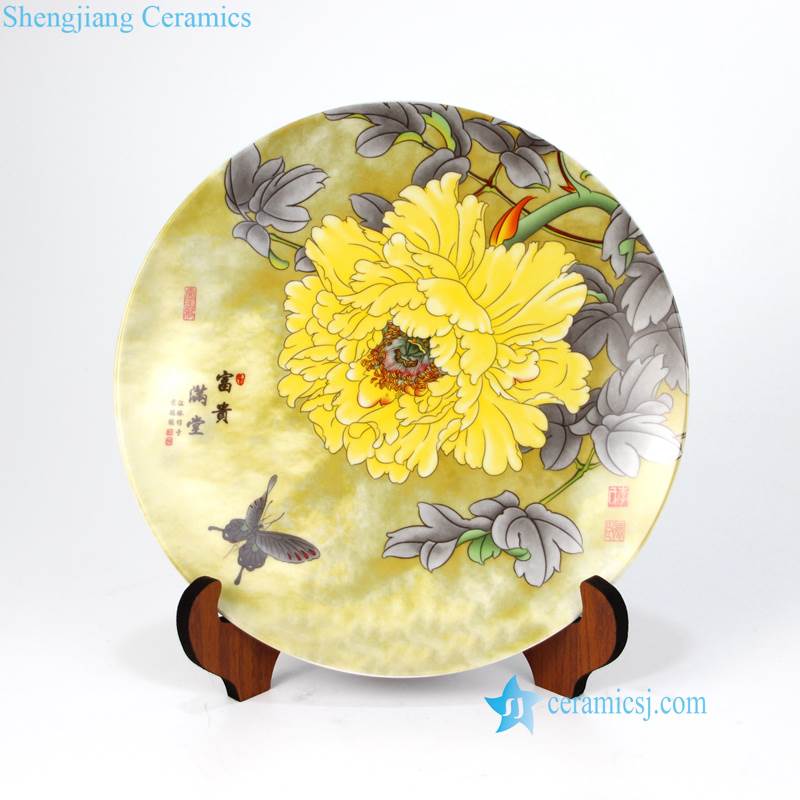 Autumn chrysanthemum with butterfly pattern ceramic home decoration plate