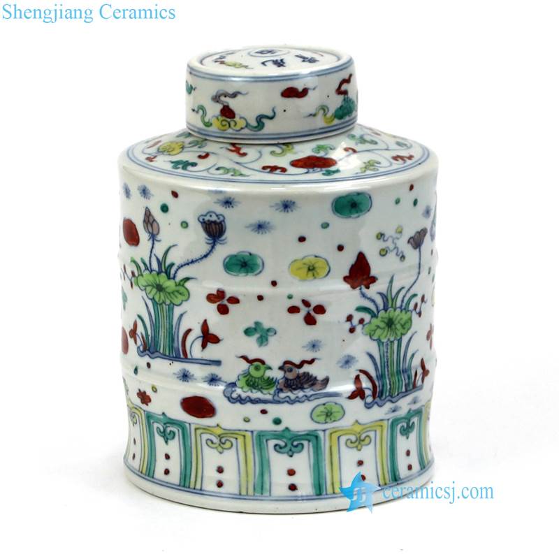 Ming dynasty clashing color Chinese mandarin ducks with lotus pond pattern porcelain jar