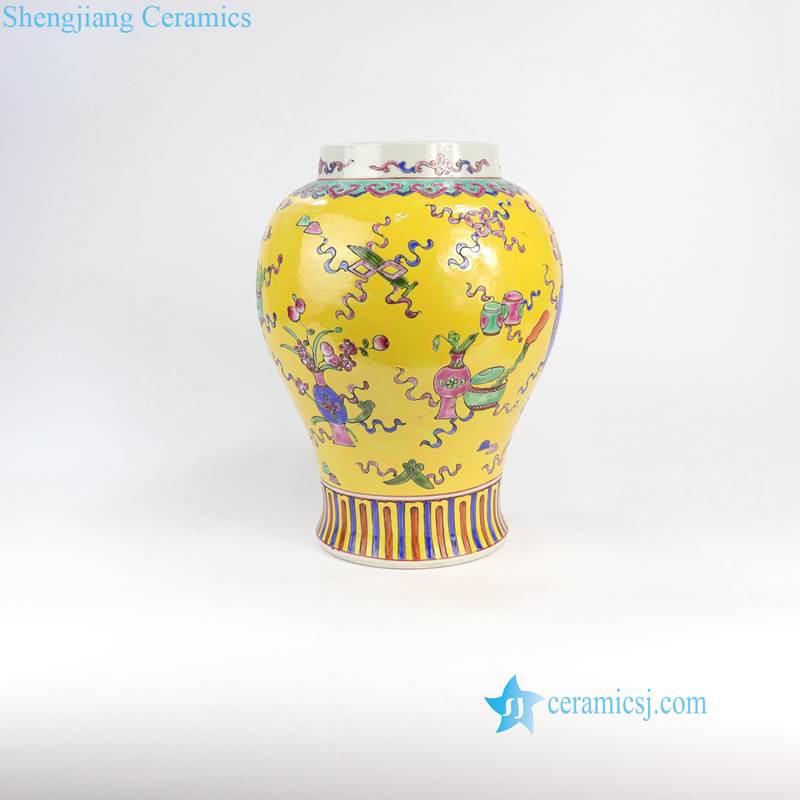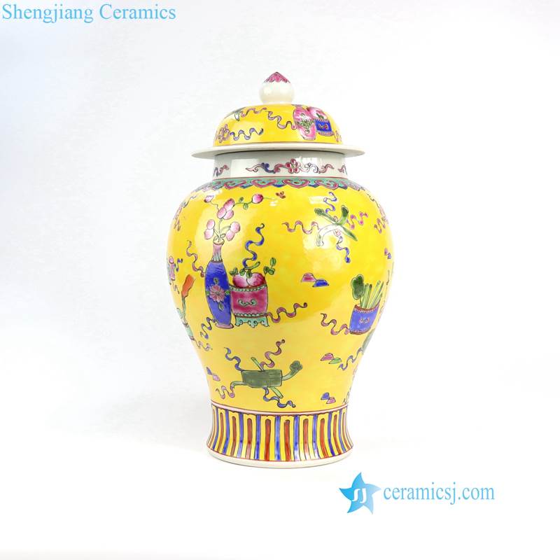 China yellow background reading room item pattern hand painted porcelain ginger jar |