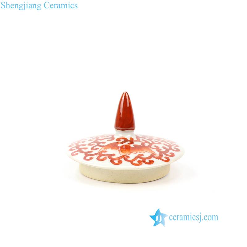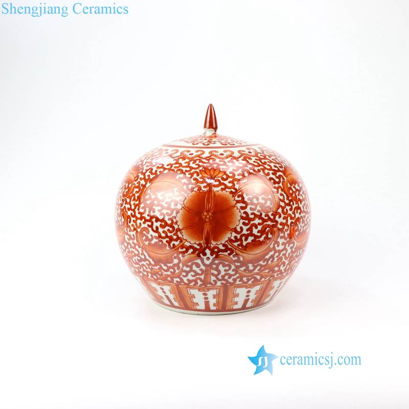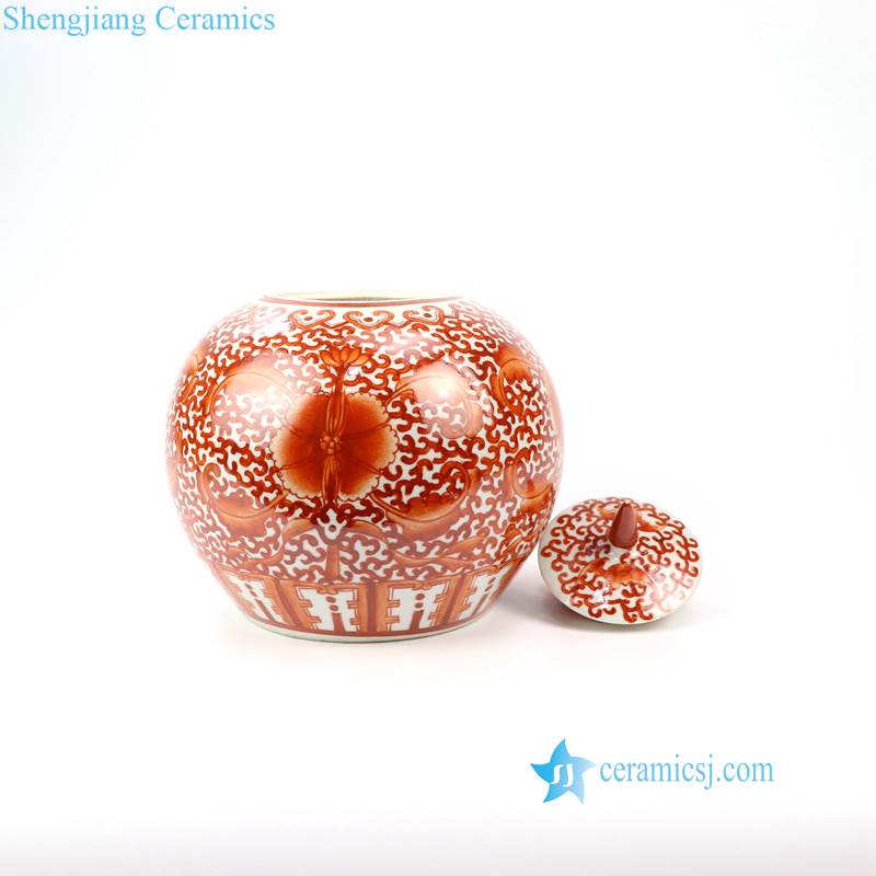 Red pigment hand painted lotus ceramic jar |