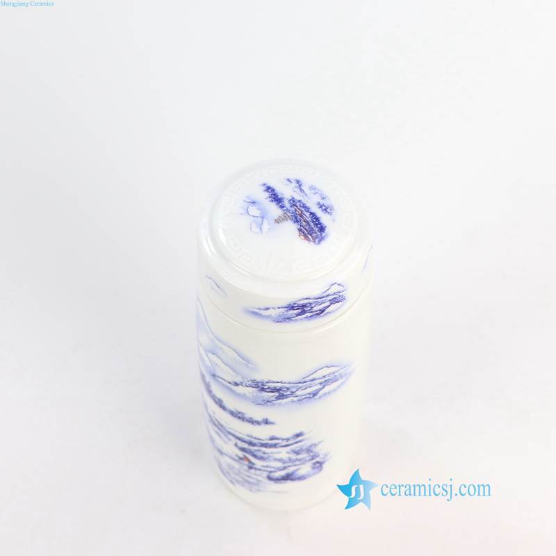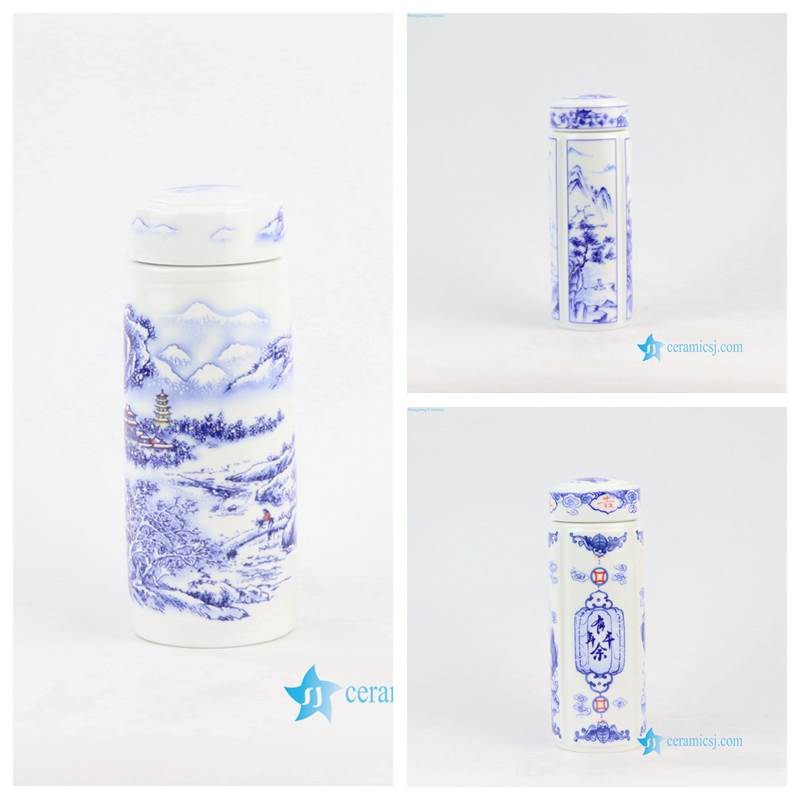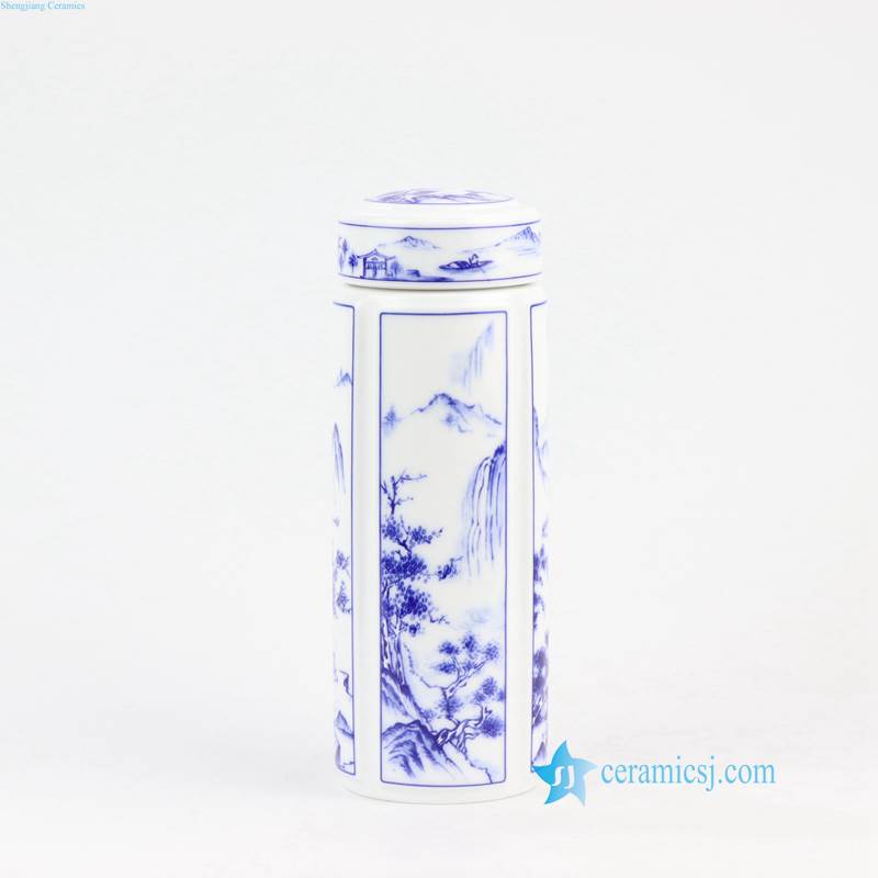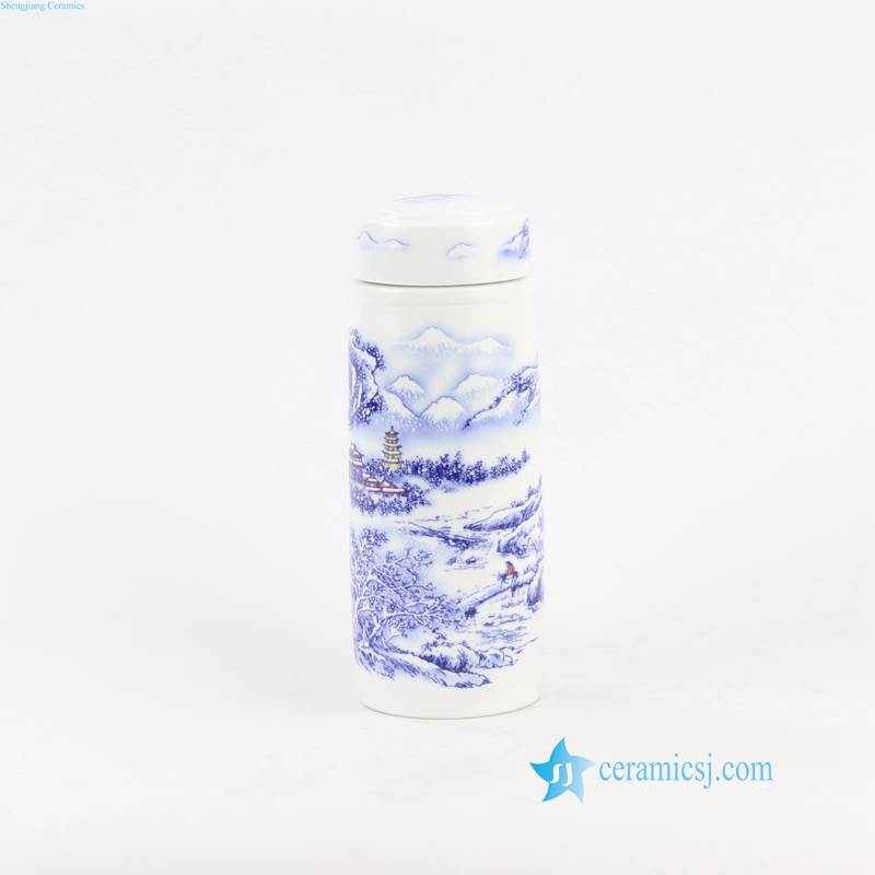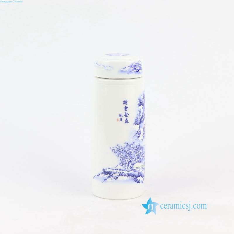 blue and white porcelain thermos tea cup