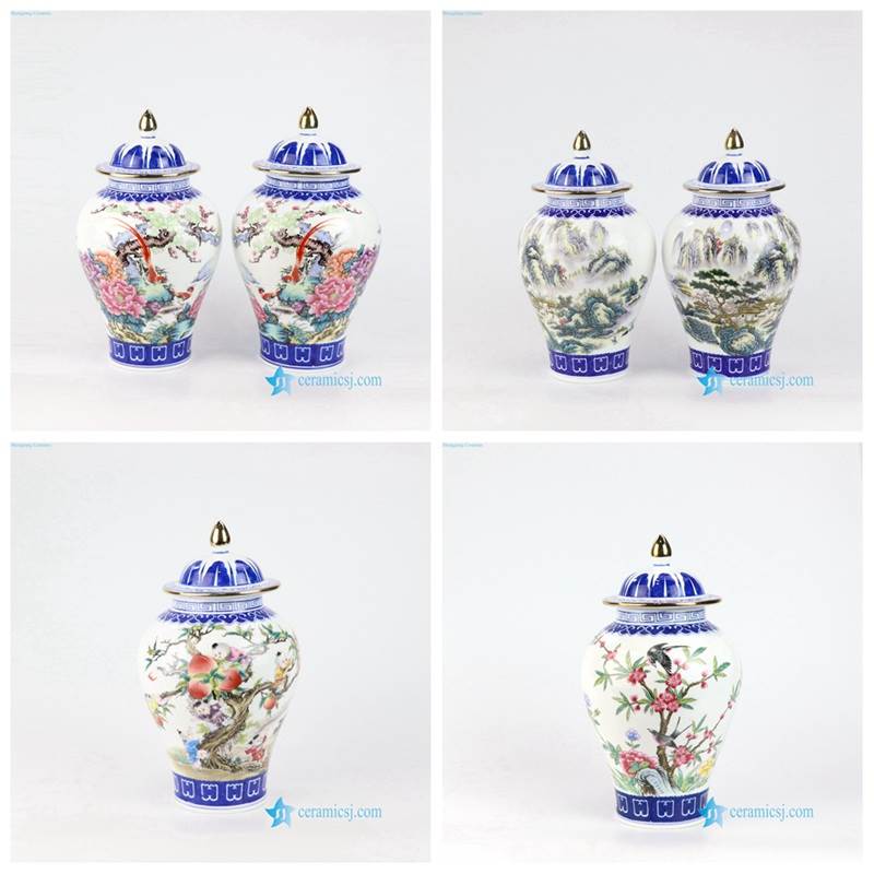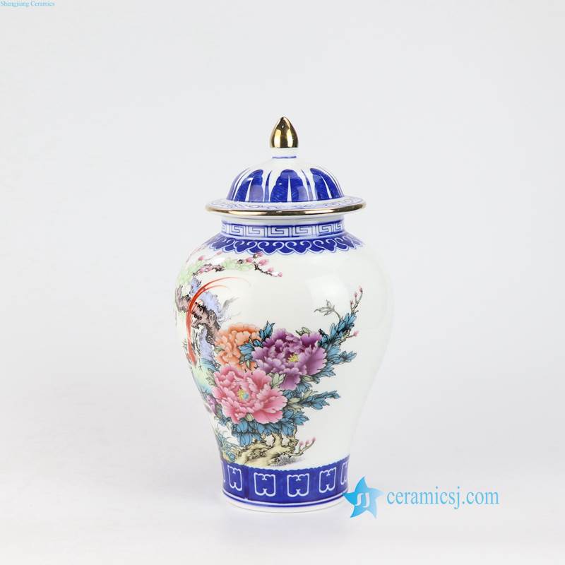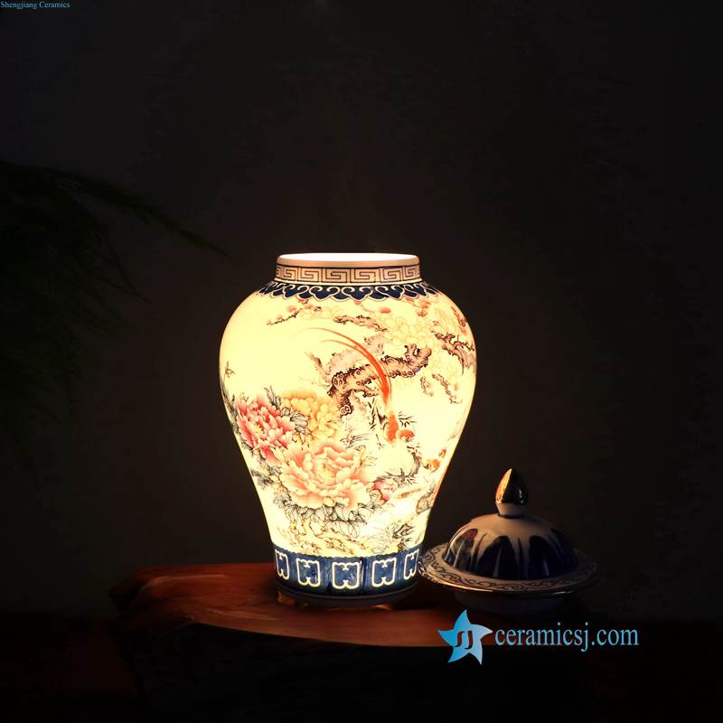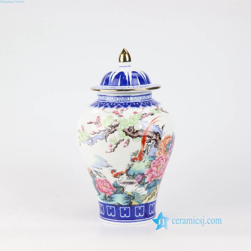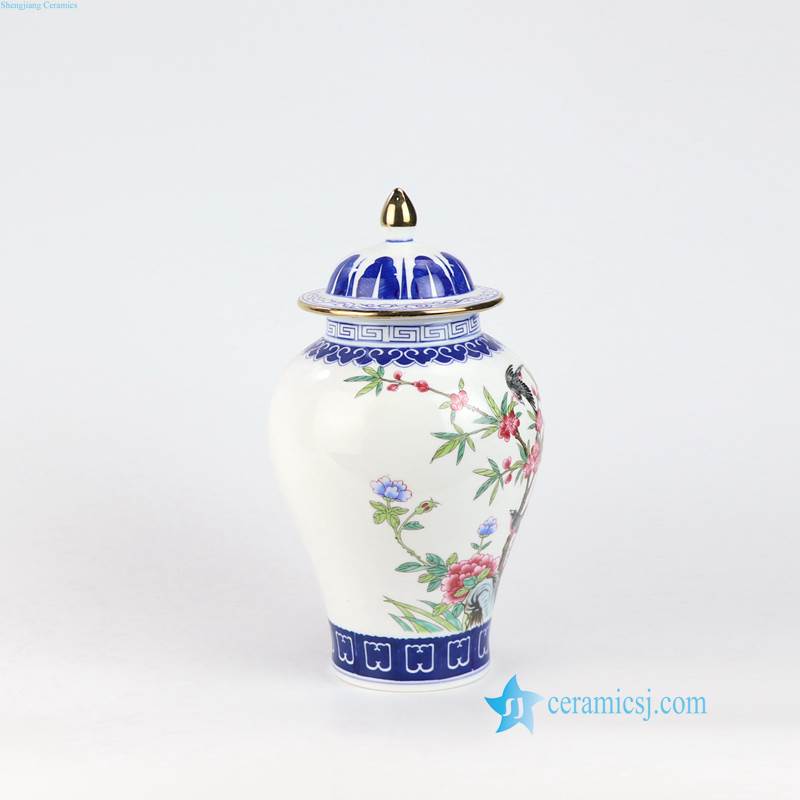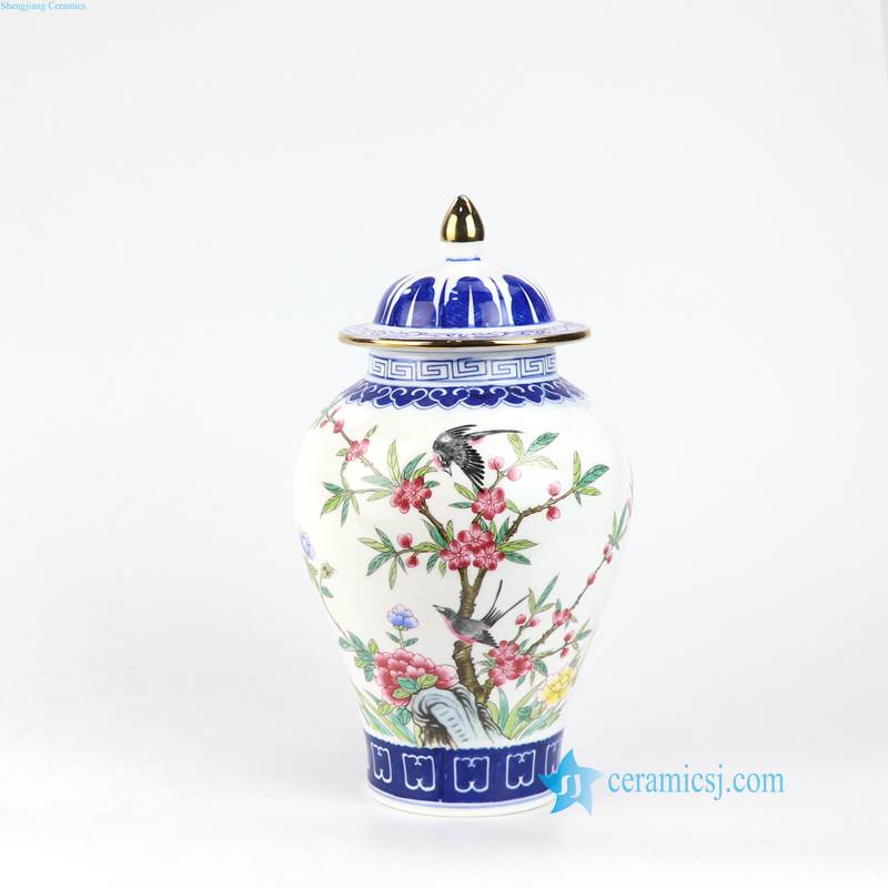 Thin layer home decor cute bird floral tree colorful porcelain jar