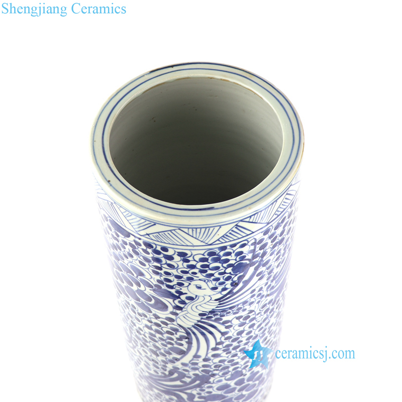 Hand drawing blue and white phoenix ceramic umbrella stand |