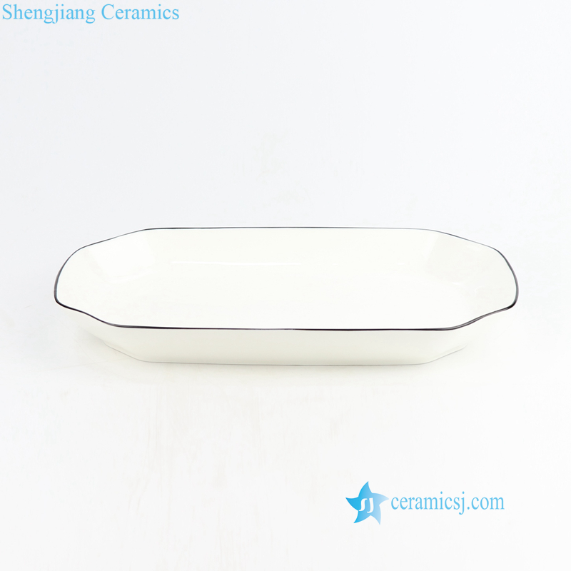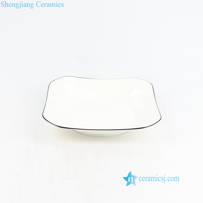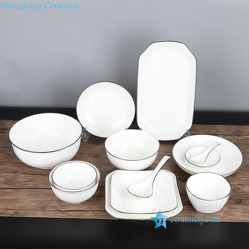 Modern luxury black rim white ceramic dinnerware set |