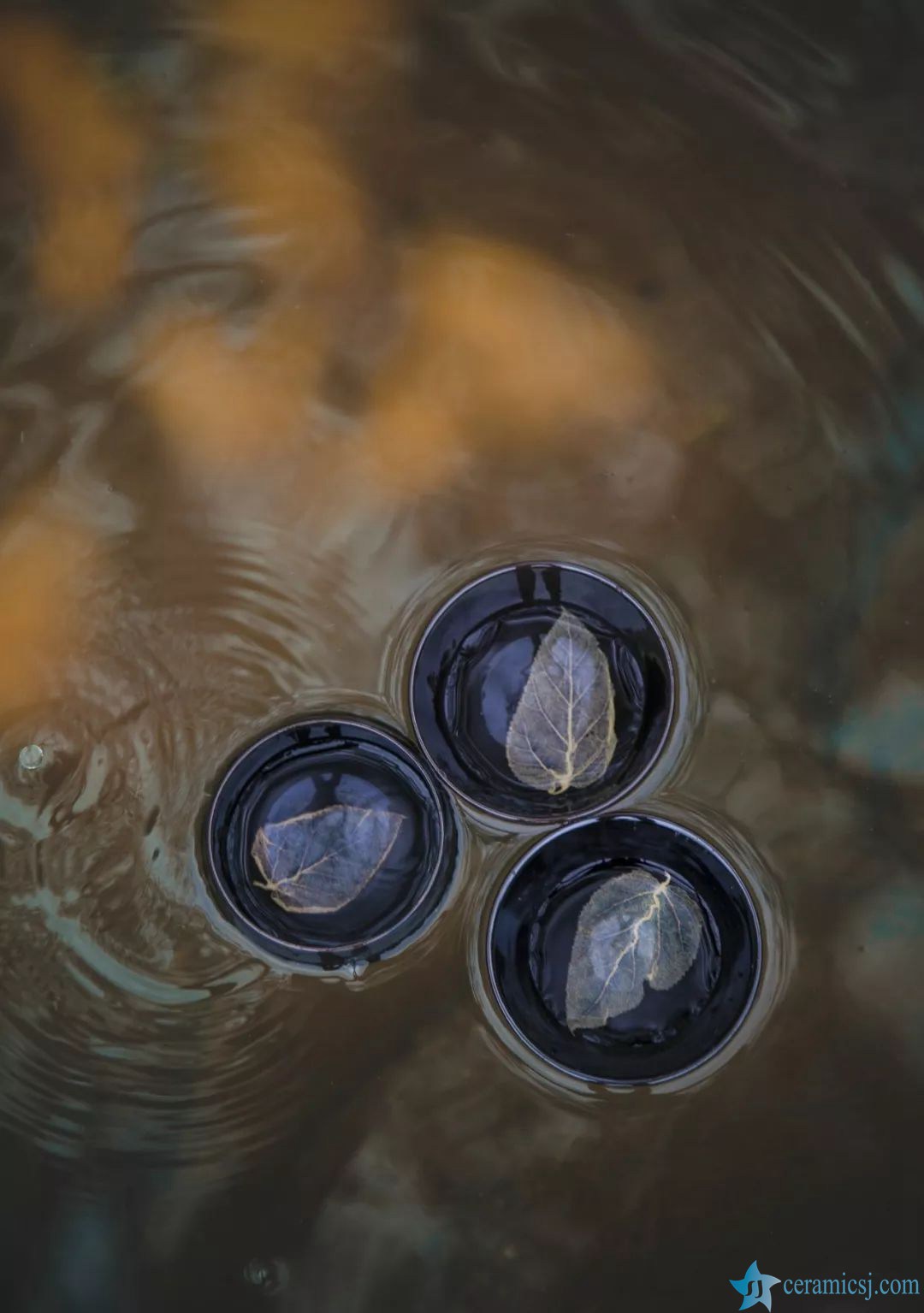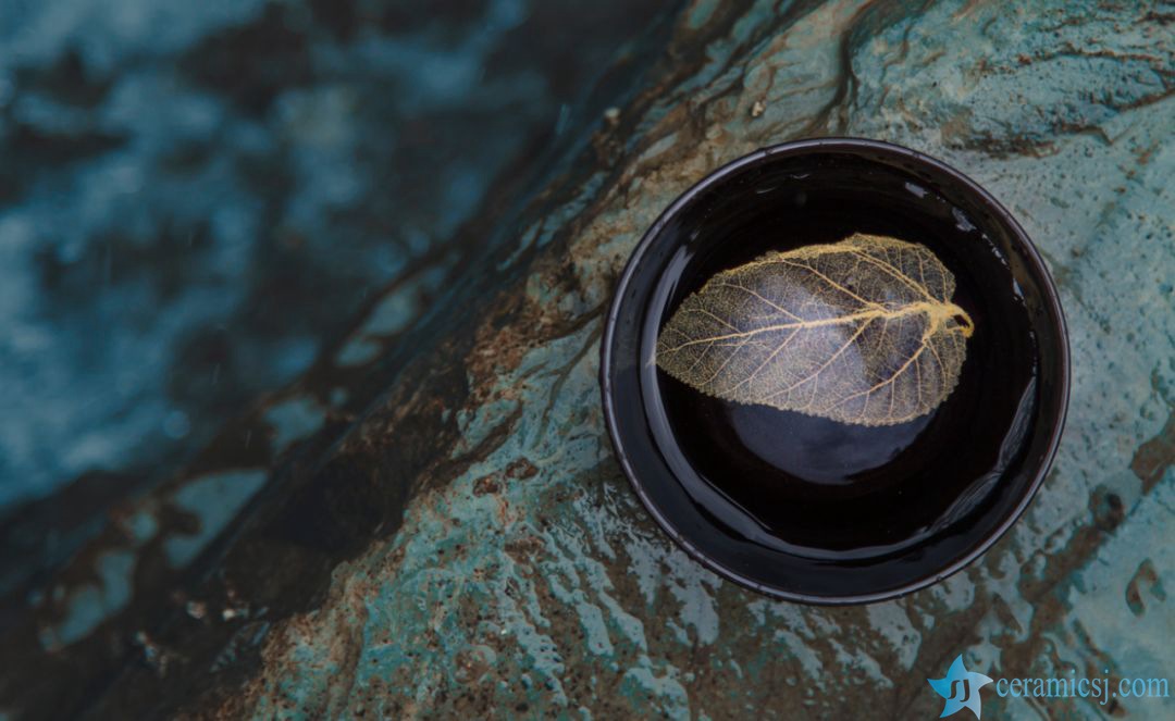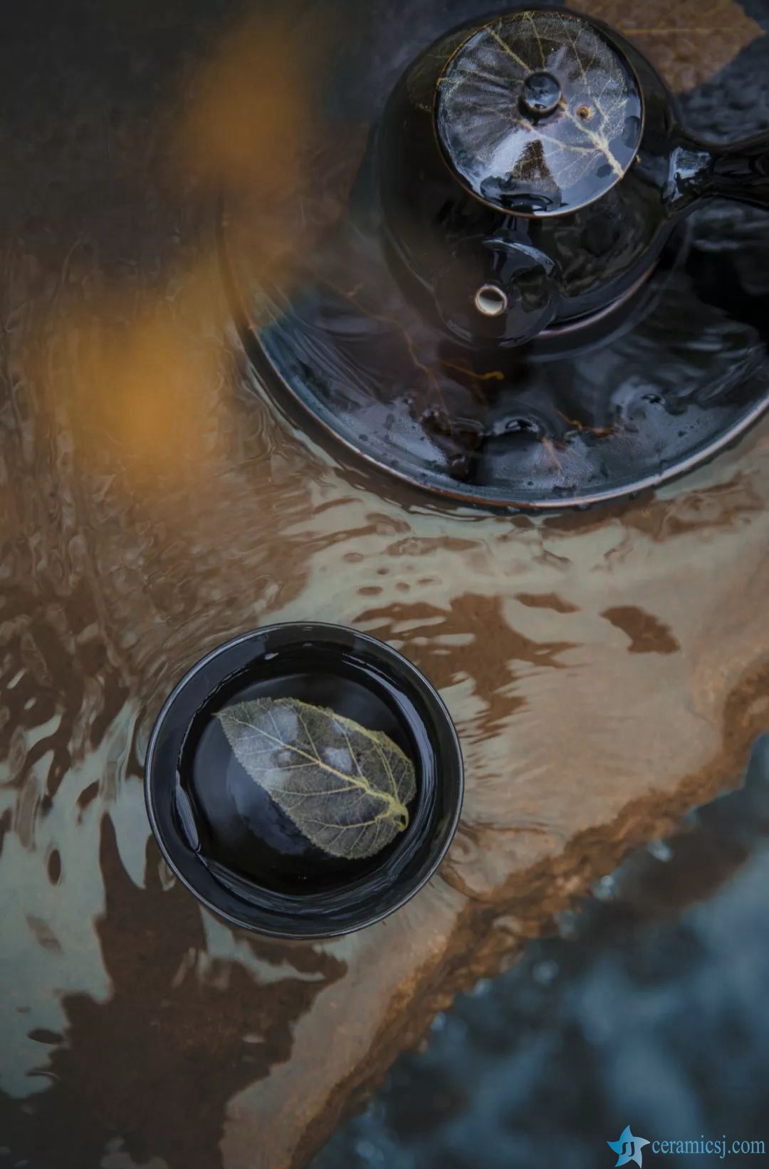 Jizhou kiln glaze has the characteristic as similar rain flower stone, when wooden leaf cup encounters water, glaze becomes black and ablaze immediately, leaf texture on the ceramic cup is like the new leaf after rain, lifelike, attract daydream.