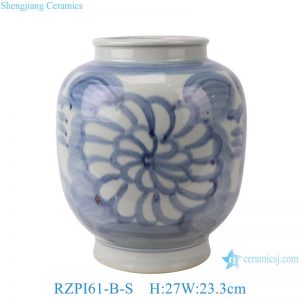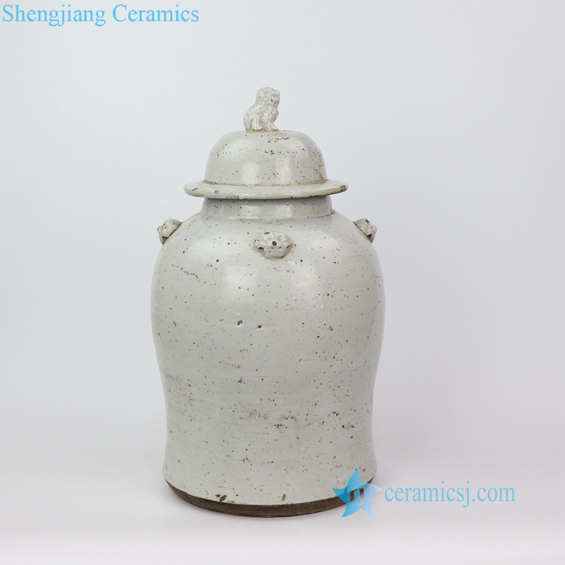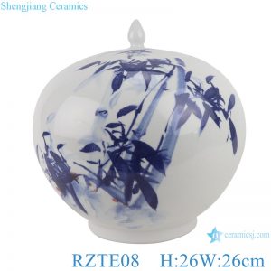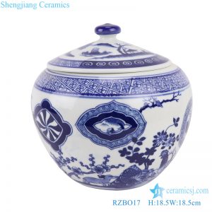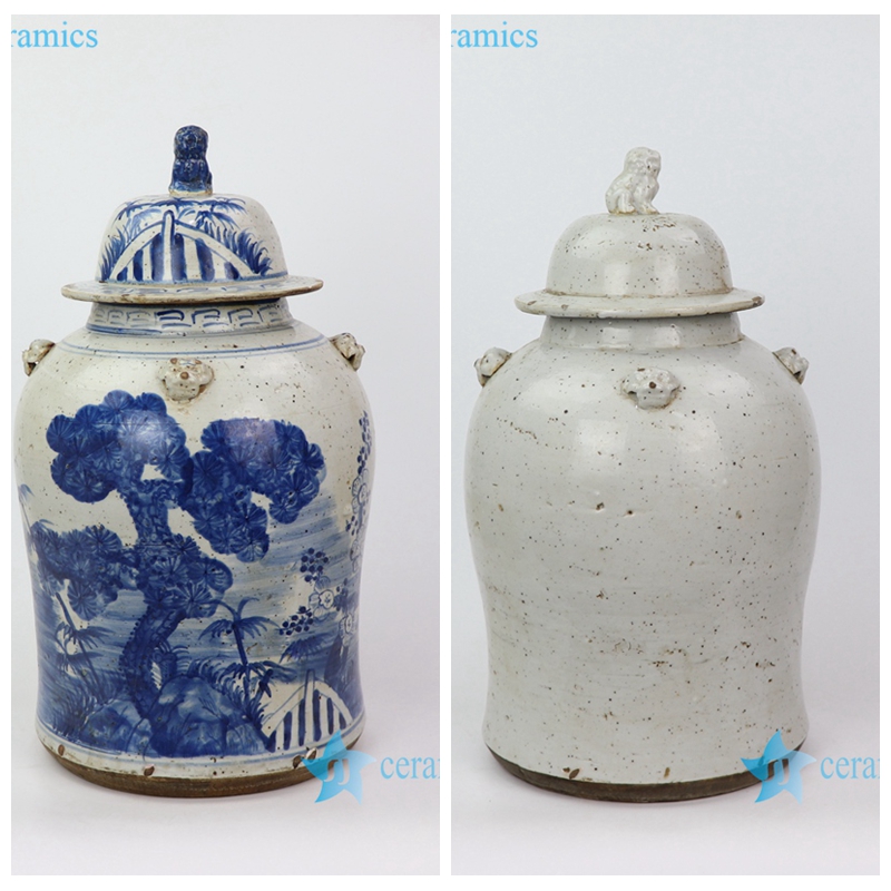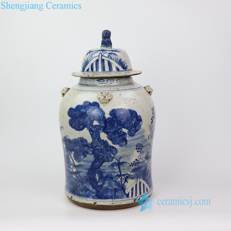 China ancitent style blue and white hand painting porcelain jar with lion knob
