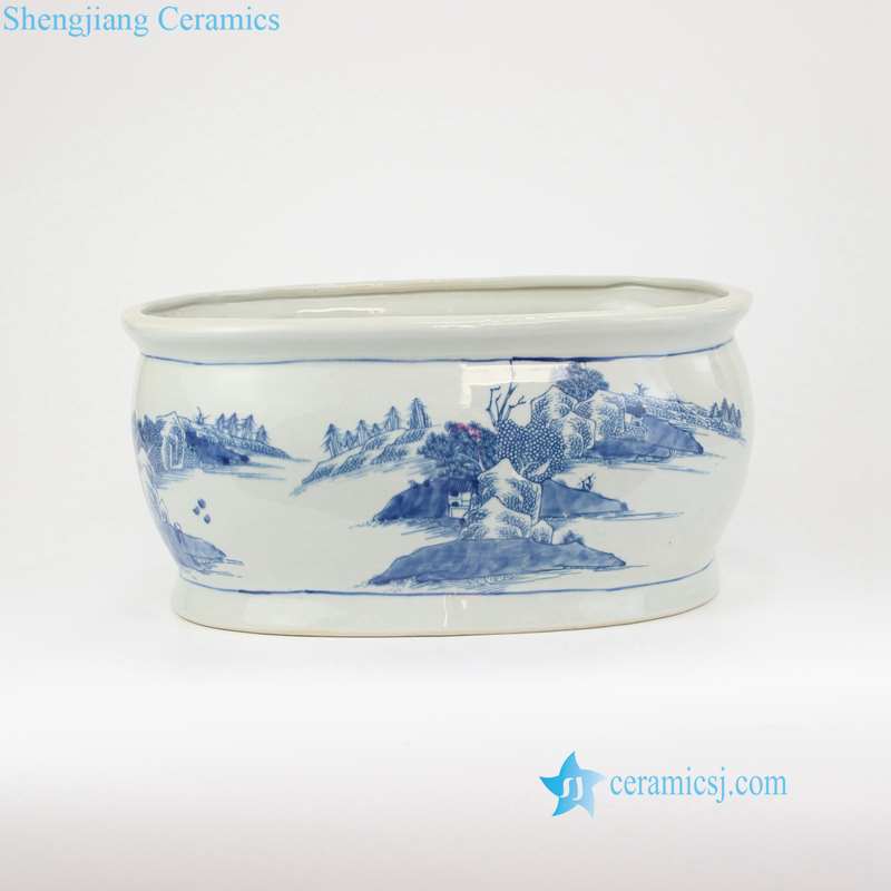 Blue and white Aisan ancient architecture orchid ceramic pot |
