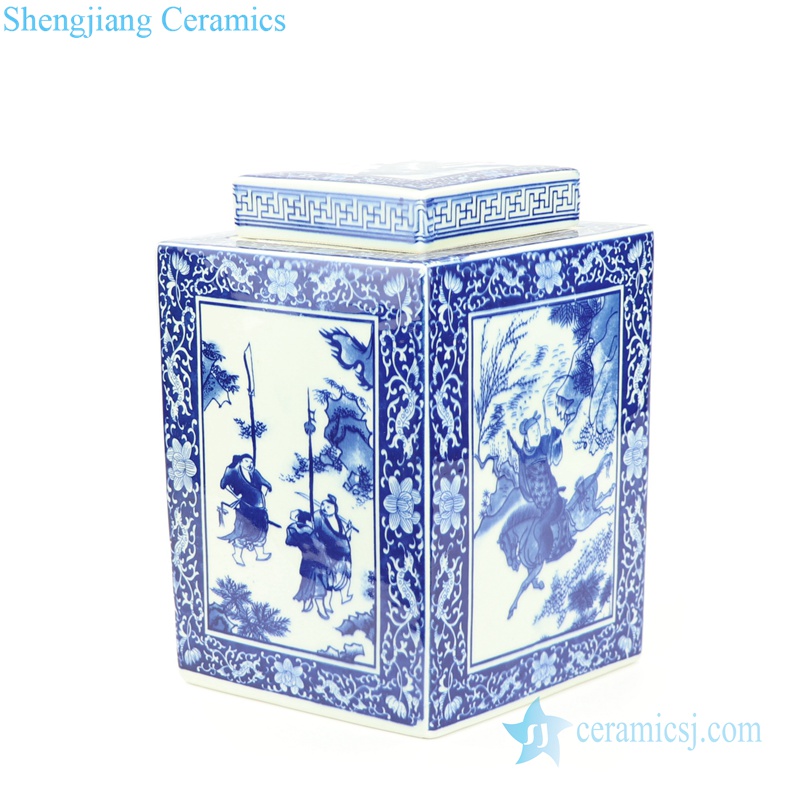 Hand painted ancient China solider pattern parapellogram ceramic jar |