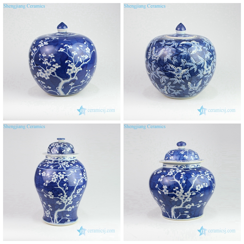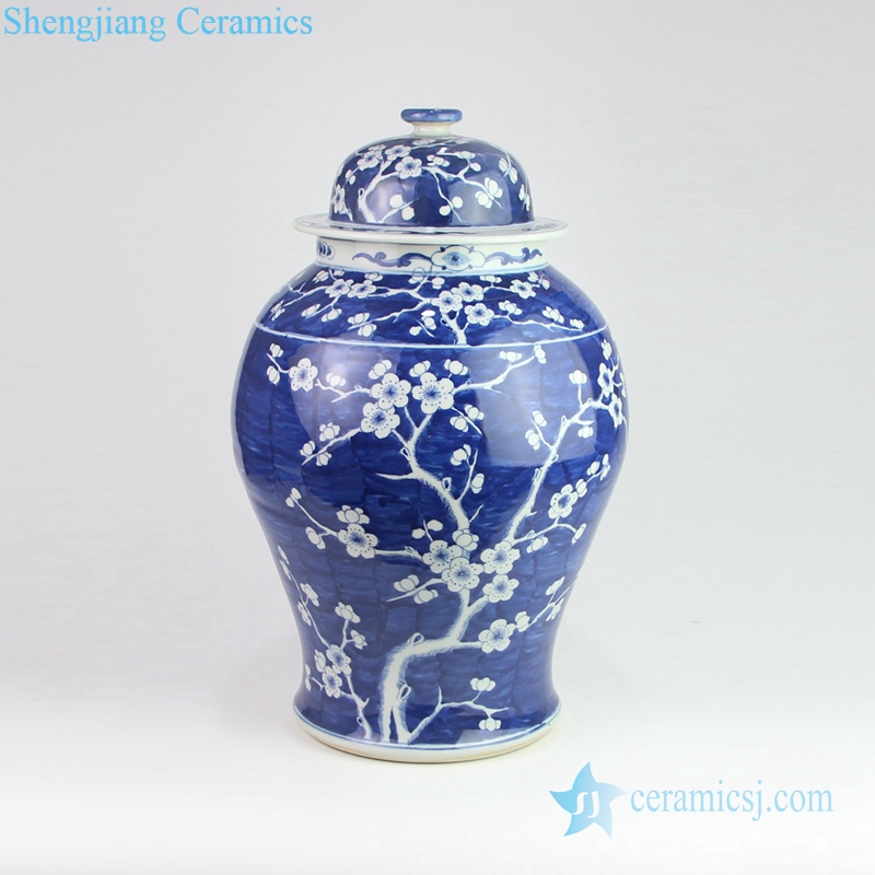 Deep blue porcelain ceramic jar with white flower pattern